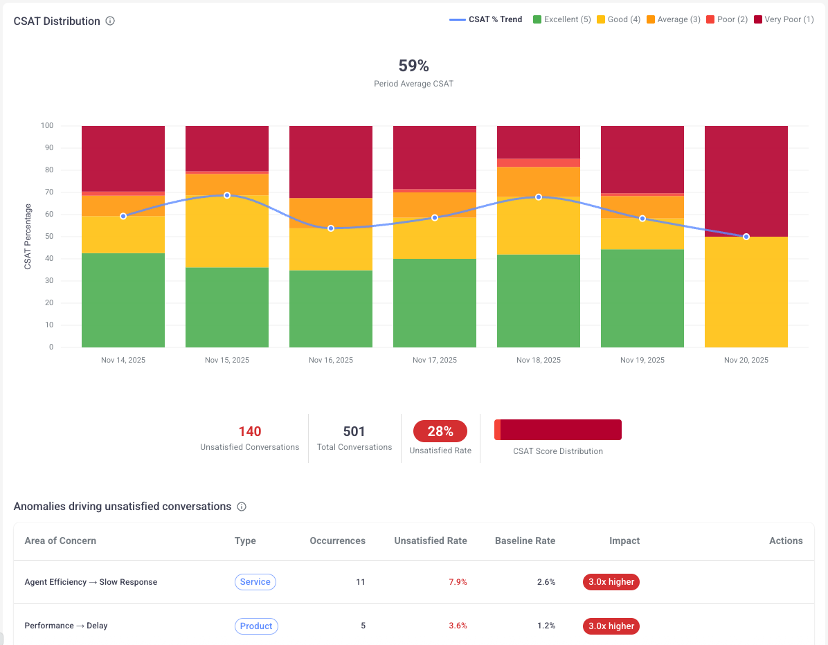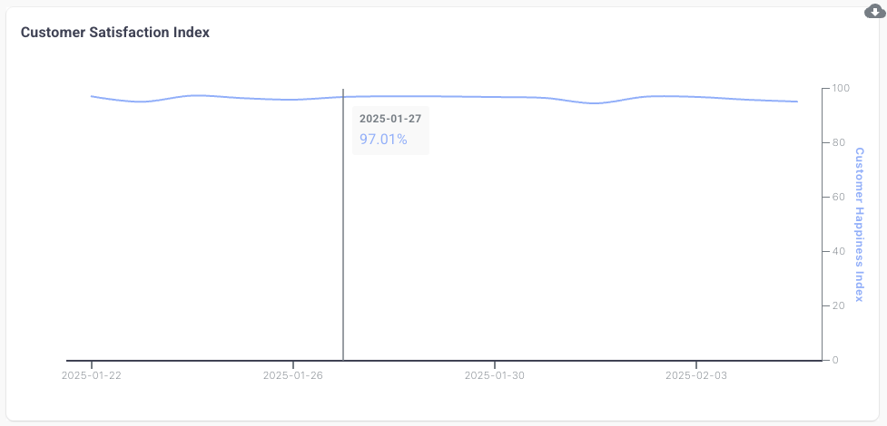 The Customer Satisfaction Index comprehensively analyses all customer interactions, not solely those that responded to your survey, providing a comprehensive assessment of your genuine customer satisfaction levels.