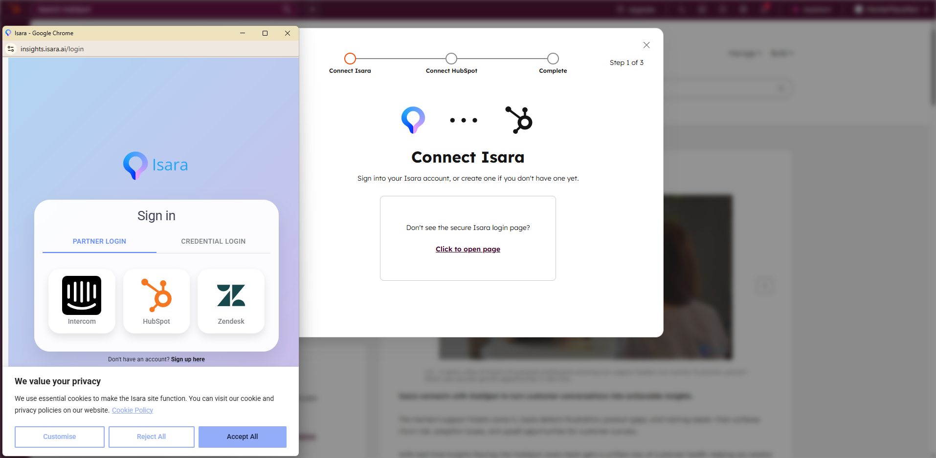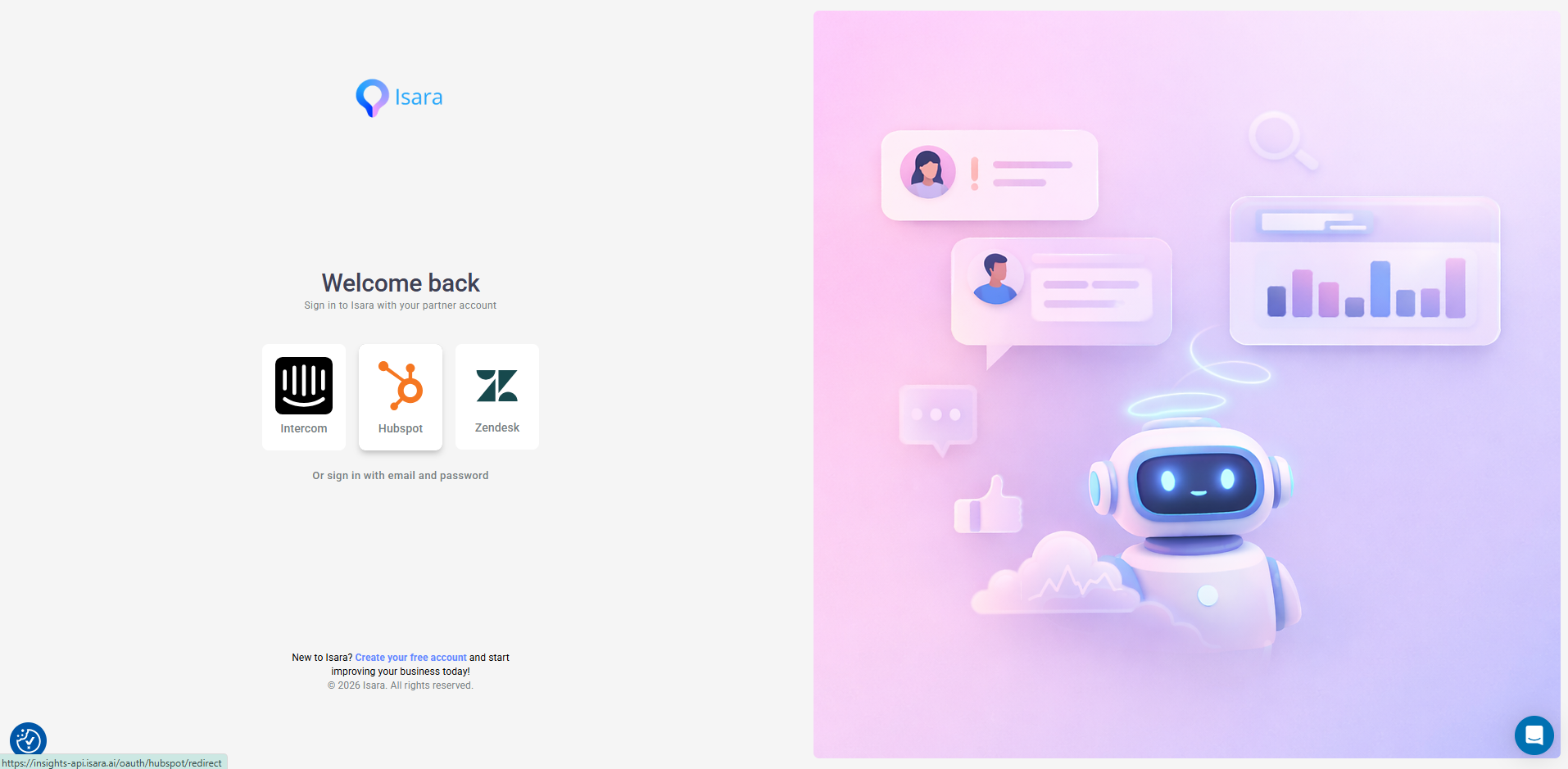 - Visit insights.isara.ai and click the HubSpot logo.