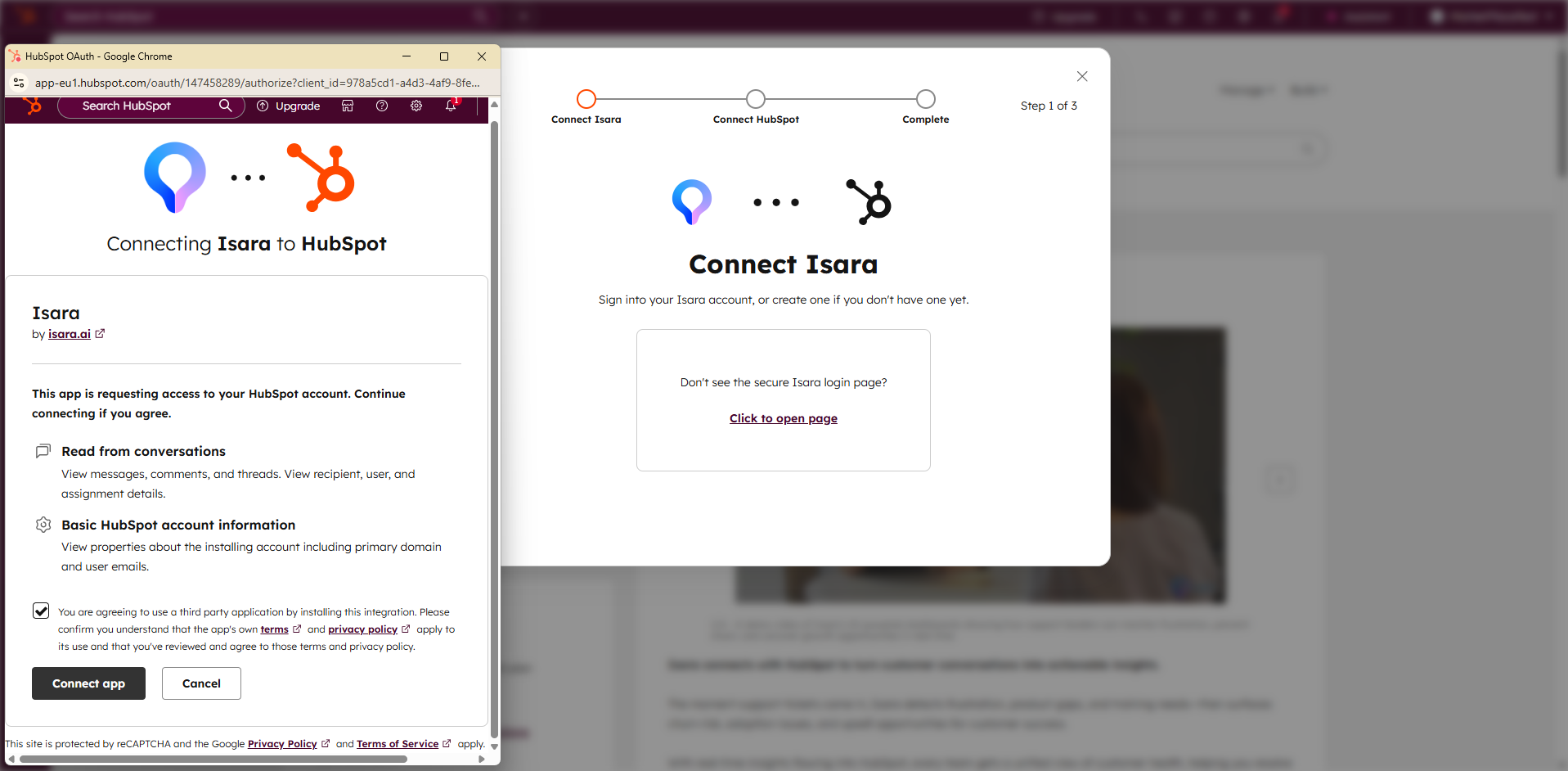 - In this last step, authorize Isara and click the "Connect app" button.